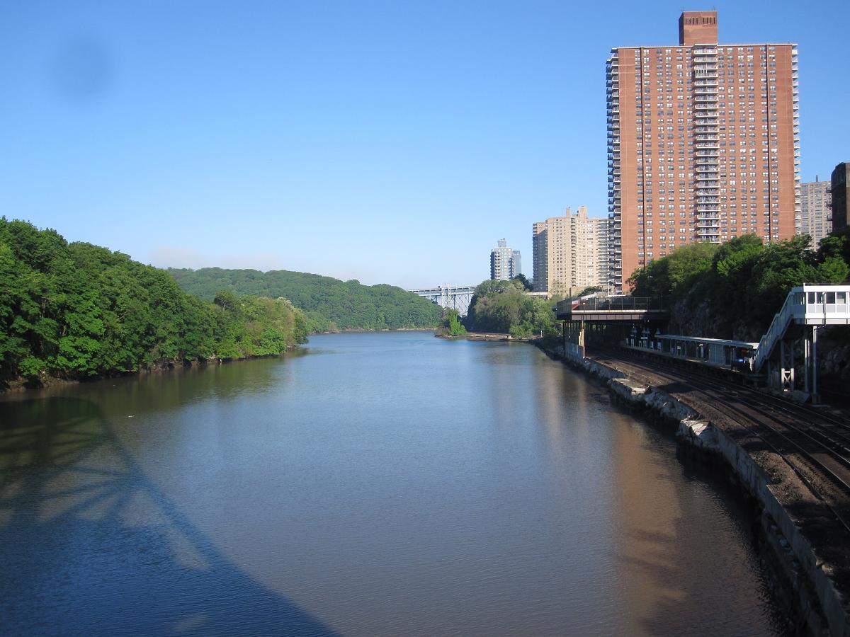 From the Broadway bridge over the Harlem River. The trees to the left of the photo are in Manhattan.