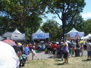 As I entered Flushing Meadow Corona Park I was surprised to see that many people had their personal shopping carts. The reason for the carts quickly became apparent. This festival has many free items. Especially at the Rite Aid and grocery areas. The Rite Aid line was long but not as long as the grocery line. I noticed that some people got back in the same line and did it again. I waited in the Rite Aid line but not the grocery line.
