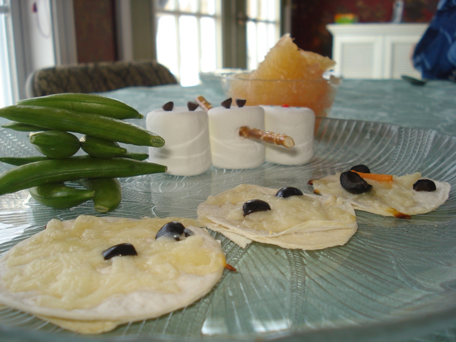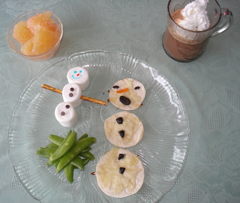I found a snowman pizza and decided to use that idea with tortillas. It made a quick and fun lunch.