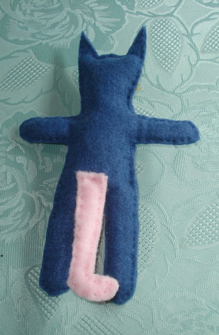 My younger niece had a specific request. She wanted a blue cat with a pink tail. I slightly modified the bear pattern and designed a curved tail.