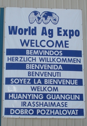 The main reason my husband and I joined the CLAAS tour was to attend the World Ag Expo in Tulare, California. The World Ag Expo is a large agriculture exhibition. It covers most aspects of agriculture (equipment, communication, technology, etc.) including many areas of production agriculture (dairy, nuts, fruit, etc.) .