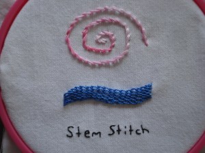 Top row: Stem stitch