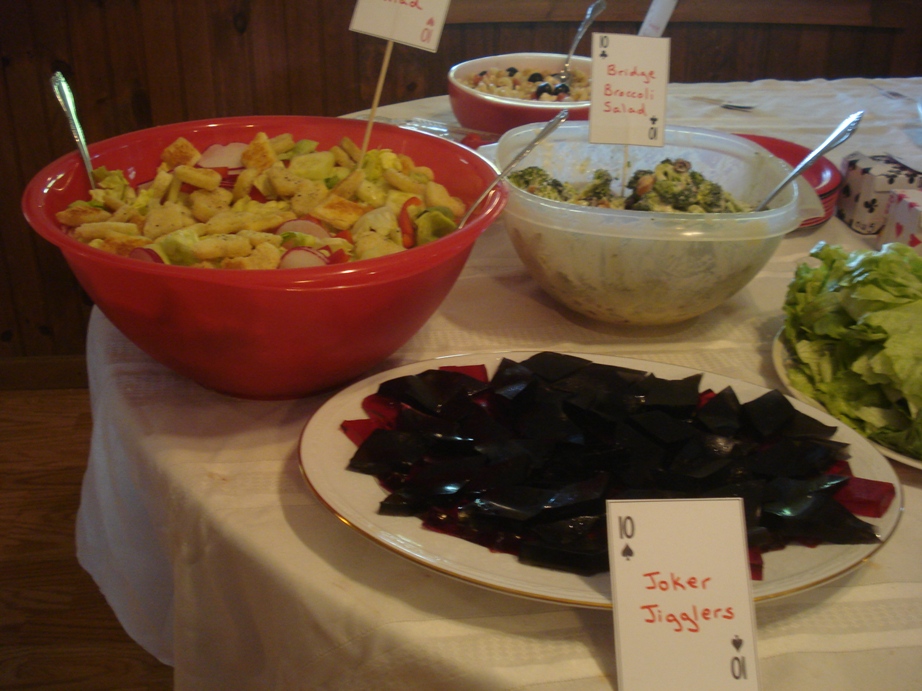 - Red Suit Salad: I made hearts and diamond croutons using these directions. I also added sliced radish, sliced red pepper, heart and diamond shaped red pepper and cucumber to the lettuce.