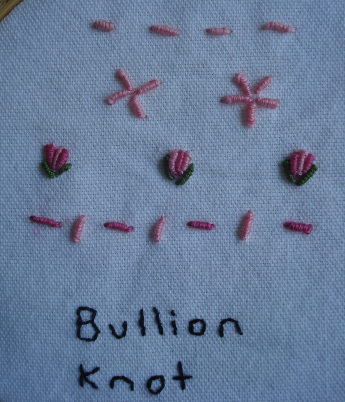 The stitch for week 20 of TAST is the Bullion Knot stitch.