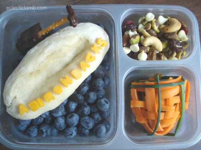 For this vacation themed bento I made a bread canoe. Canoes remind me of summers at our family property in the Adirondacks (Hamilton County, NY). I love canoeing on a calm lake in the morning or evening.