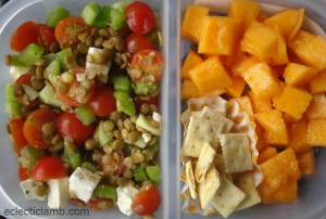 This lunch was fresh from the garden (mine and my grandmother-in-law’s). The Lentil Salad with Feta Cheese is a typical summer staple for me. I added the crackers for an extra “crunch” factor.