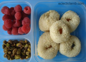 Starch: homemade mini sesame bagels with homemade apricot jam