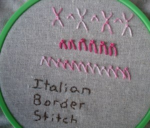 The Italian Border stitch looks good in any direction. Don’t worry about the placement of the stitches.