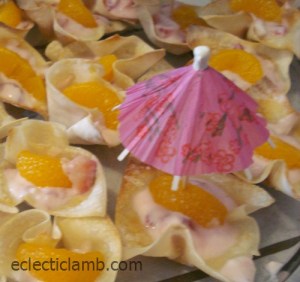 What a great idea…I, too , loved the wonton cranes and esp. the apple swans.