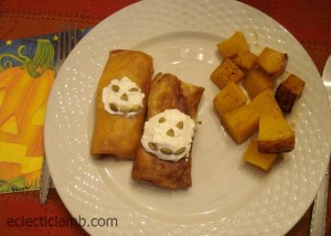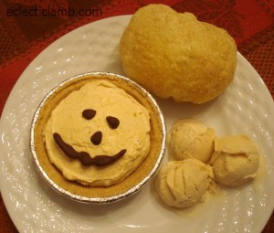 My family and I prepared and enjoyed a jack o’ lantern themed meal. Each course had a jack o’ lantern face and all but one course had pumpkin.