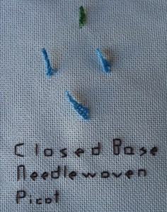 The stitch for week 44 of TAST was the Closed Base Needlewoven Picot stitch. As is typical when I learn new stitches this stitch took some practice. My last try worked out the best. The Closed Base Needlewoven Picot stitch would be great for leaves and flower petals.