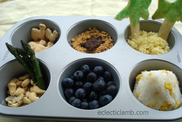 Very attractive theme! Kids love to see a variety of stuff on their plate or rather muffin pan as it breaks the monotony. Nice colours and shapes.