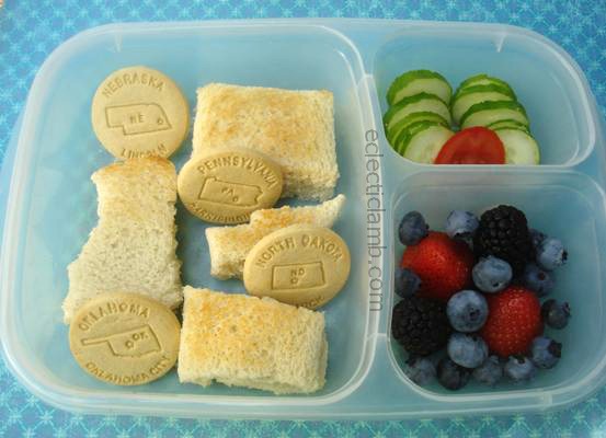 This state themed lunch is like a lesson in Geography. It is fun way to make kids read while they eat. Beautiful lunch!