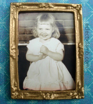 My 11 year old niece and I had a delightful time creating miniatures. We scanned, re-sized, printed, and framed miniature photos of her Grandmother (my Mother).