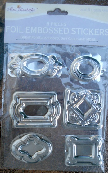 For some of the photos we used Foil Embossed Stickers from the Dollar Tree. I thought they were $1.00 but when I checked out, the cashier said it was on sale for 1 penny! When I was fishing for a penny, a person behind me in line handed me a penny and said, “Pay it forward.” So it was free for me! We glued some photos on these stickers and glued light cardboard to the backs of these frames.
