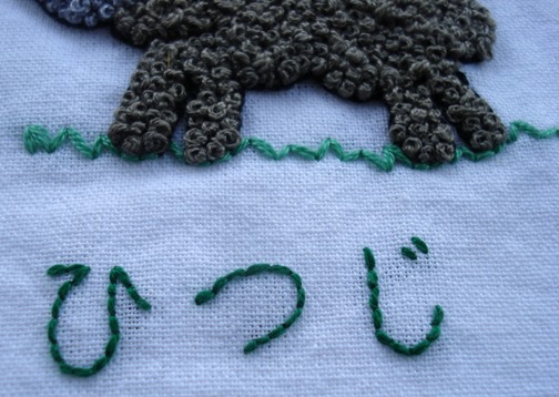 This is my entry for the &Stitches Back to School Stitching Competition. My flash card is for the Japanese character ひ (Hi). The Japanese word ひつじ (Hitsuji) means sheep. Since I am interested in Japanese language and culture and love sheep and lambs, it was a natural choice for my flash card. This was stitched on a Flour Sack Towel and the finished size is 3 x 5 inches. It is my own design.