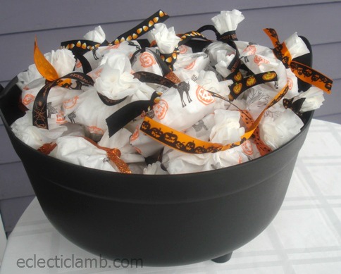 It is entirely possible that my trick-or-treaters will not think that this bag of treats is anything special but it is what I decided to give this year. In the past I have made special containers such as these felt bags.
