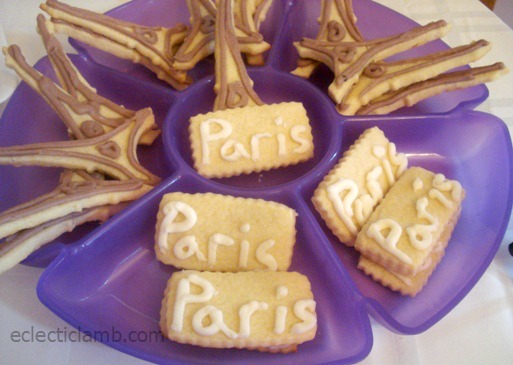 - Eiffel Tower and Paris sugar cookies – I am not skilled at frosting cookies but I have success piping frosting with a Ziplock bag so I used this technique for these cookies.