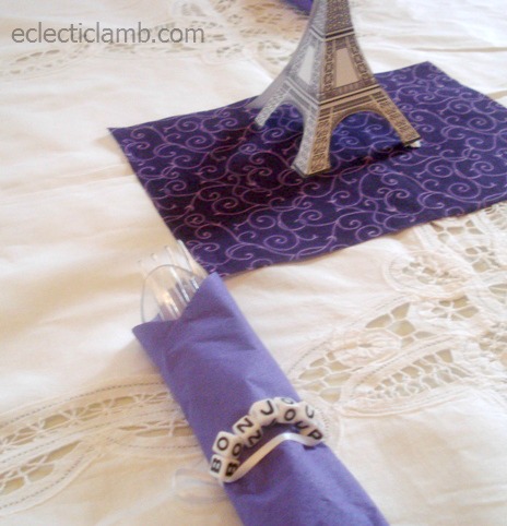 - I ♥ Paris candles – I designed and printed simple text to attach to candles. We just taped them on. (To be safe, we did not light the candles.)
