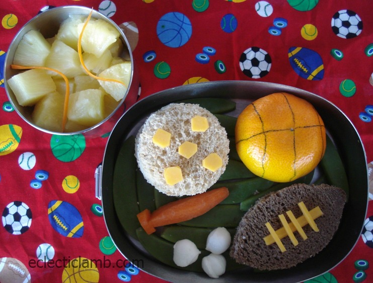 I found Football Shaped Ritz crackers at a local Tops Grocery Store. It was my inspiration for this simple snack bento. I used a Sistema Split Food Container. A simple snack of cheddar cheese with food marker details, chocolate footballs, and football shaped Ritz crackers.