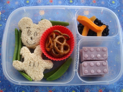 My husband and I will take our 9 year old nephew on a vacation to Florida. It will be his first time on an airplane. We will go to Disney World and Legoland. In celebration of our upcoming trip I made this simple Disney and Lego themed meal.