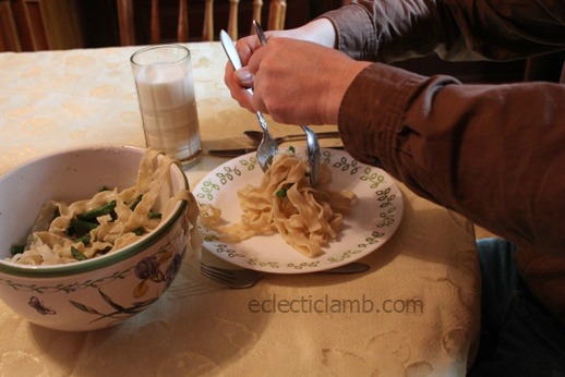 - Ribbon Pasta with Asparagus and Parmesan – Wegmans Mafaldine pasta, cooked asparagus, butter and Parmesan cheese, freshly ground pepper (I had planned to add sliced almonds but forgot to use them)