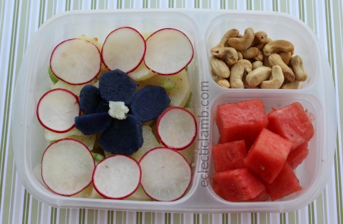 Iris – Kristi from beneficial bento made a gorgeous iris out of potatoes, cheese, sugar snap peas, and black sesame seeds.