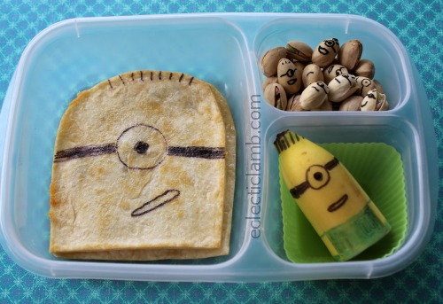 Bottom Right: Minion banana. I drew on the banana with a food safe marker. I was inspired by this lunch created by Lunchbox Dad.