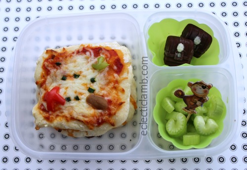 Arrr! I have two lunches today for Talk Like a Pirate Day, a Lego pirate and a pirate map pizza.