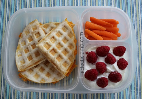 Today is International Waffle Day so I have a lunch quesadilla waffle and a dinner or dessert waffle with ice cream and fruit. I got the idea for the quesadilla waffle from here.