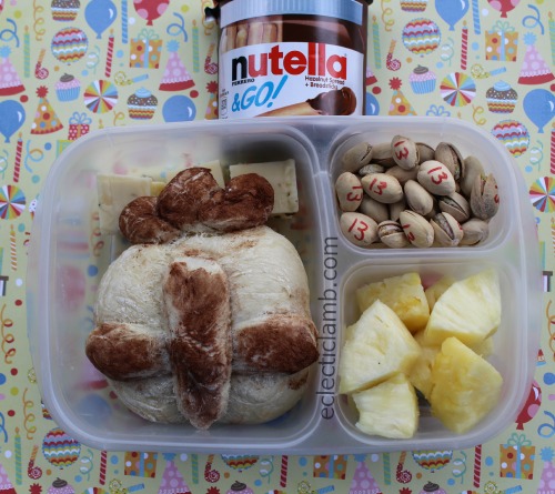My nephew is turning 13 today so I made him a themed lunch to take to school. He is fine with a theme as long as it is food that he likes. I think that he especially loved that I included Nutella!