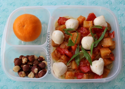 Right Side: Eggplant Pomodoro over Angel Hair pasta – I did not use whole wheat Angel Hair
