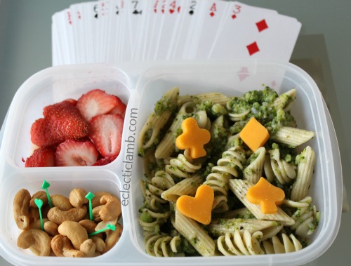 My friend and I made this easy card themed lunch for her husband. It was quick to make with leftovers from the night before.