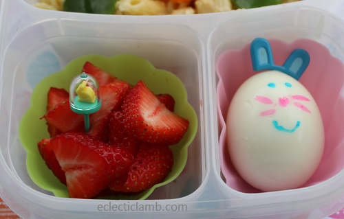Bottom Right: Bunny – hard boiled egg with food coloring marker and ears food pick
