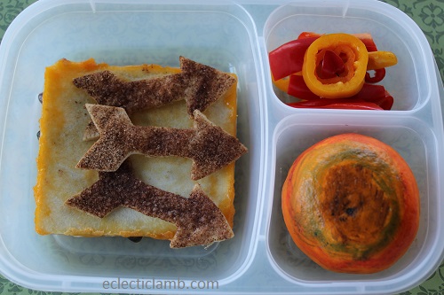 Left Side: Cheese quesadilla, cinnamon tortilla arrows (cookie cutter)