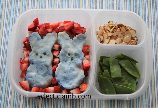 I made this Purple Bunny Peeps themed lunch for myself. I don’t eat Peeps but I think they are cute and was happy to use my Peeps cookie cutter.