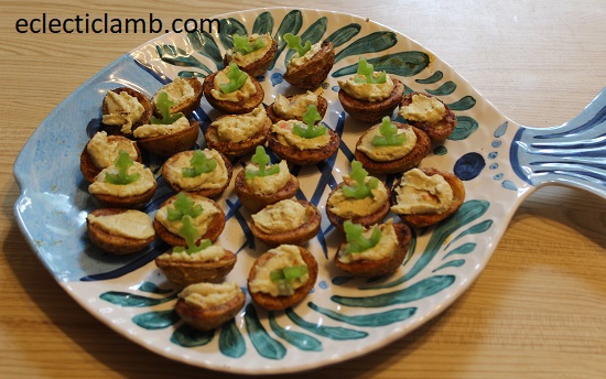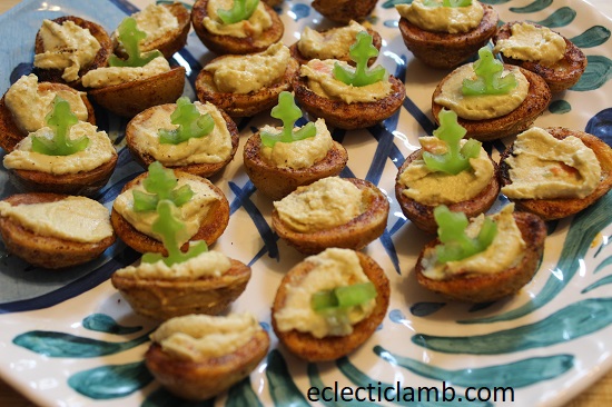 We toasted with Asti and enjoyed these appetizers. I mostly used the idea from this but filled it with vegetable hummus and garnished with mini green pepper anchors cut with a cookie cutter. Everyone enjoyed!