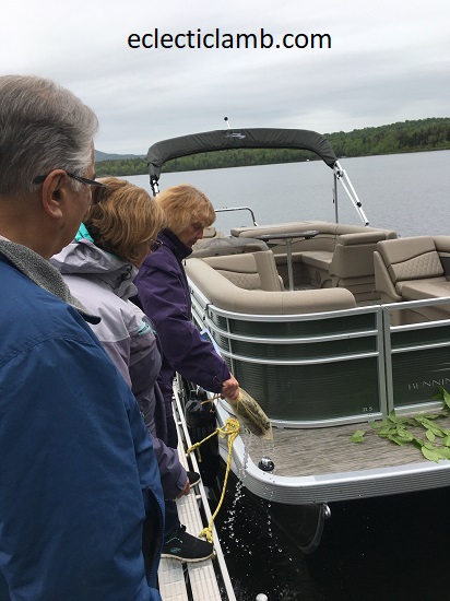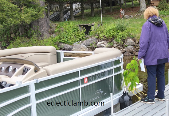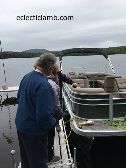 My Mom had a boat christening party for my parent’s new Pontoon Boat. The weather did not cooperate as we had planned. It was cold and rainy. We adapted and still held the christening ceremony and party but instead of having the boxed meals on the boat, we had them in the house. My Mom had a small speech prepared and broke the special ceremonial bottle. She allowed me to participate by pouring a small amount of red wine into the water. I enjoyed attending this special ceremony and look forward to many rides in the boat. It is very comfortable!