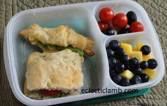 - Egg salad (my Mom made) with lettuce on Trader Joes freezer mini croissants that I baked before the party