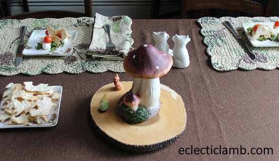 I made a woodland themed dinner at my parents Lake House when my Aunt and Uncle were visiting from Atlanta. I am sorry that my Aunt was not feeling well and could not join us for the meal. But the rest of us enjoyed.