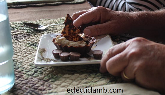My critique of the meal: I think we all enjoyed everything. I especially liked the 3D Appetizer scene and hope to make different scenes in the future. I don’t eat mushrooms but my parents and Uncle enjoyed them. As usual, I want to improve my ravioli plating but the trees were cute and delicious. I was concerned that my parents and Uncle would think that the dessert was not sweet enough but the sweetness of the chocolate off-set it. I used unsweetened yogurt and peanut butter powder in the filling. The tortilla tree had only cinnamon on it. I think it was a perfect complement to the chocolate cup and peanut butter cups.