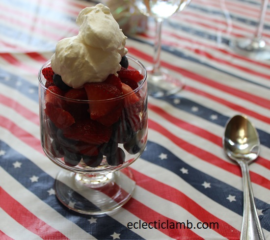 Red, White, and Blue Dessert – Sliced strawberries, blueberries, fresh whipped cream.