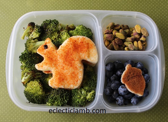 Bottom Right: Acorn – Apple cut with a cookie cutter, sprinkle with cinnamon, blueberries