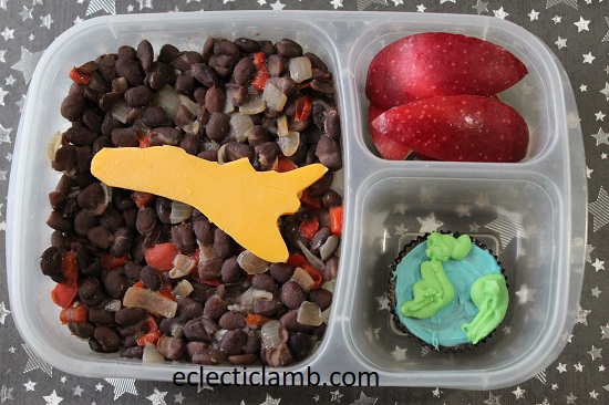Left Side: Space Shuttle – cheese (cut with a cookie cutter), Cuban Black Beans, basmati rice