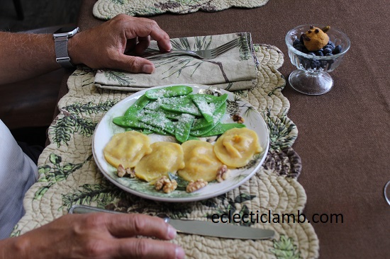 My critique of the meal: It was fun and delicious! I enjoy making ravioli days or weeks ahead of the meal to freeze. It makes preparation easier on the day of the meal.