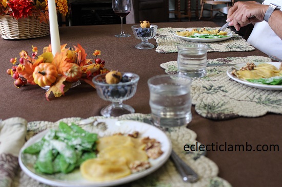 My parents and I enjoyed a pumpkin shaped and themed ravioli dinner.