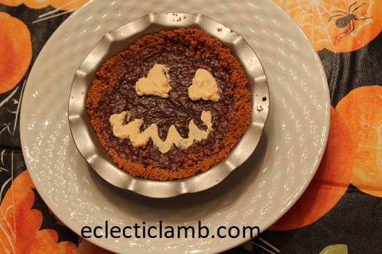 Jack-O-Lantern Whipped Cream – Whip heavy cream with orange food coloring. Sweeten as desired. Spoon into a small plastic bag, snip off a corner, pipe face onto chilled chocolate pies.
