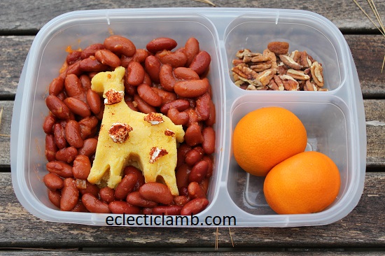 I made this adorable giraffe polenta and bean meal for my Dad.