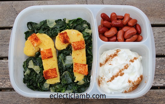 Left Side: Candy Canes – Polenta cut with a cookie cutter, smoked paprika on cheddar, sautéed spinach with onions