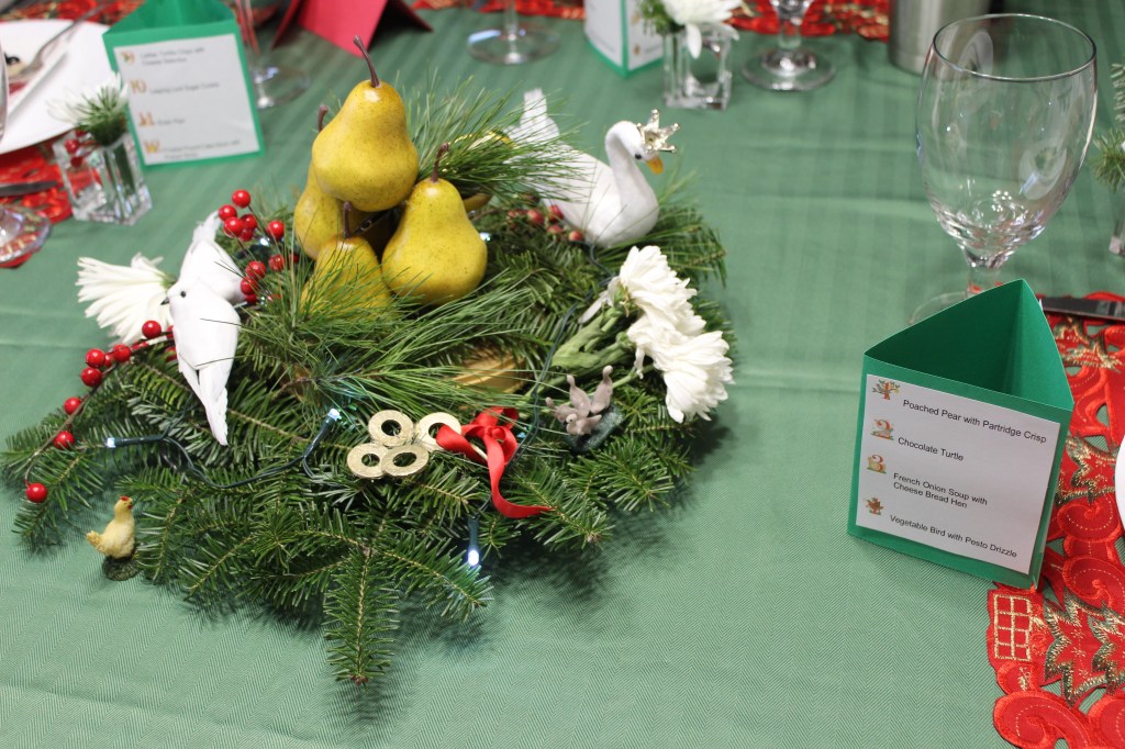 - My Mom made the centerpiece. She found different items to represent the 12 days. They were added for each course.